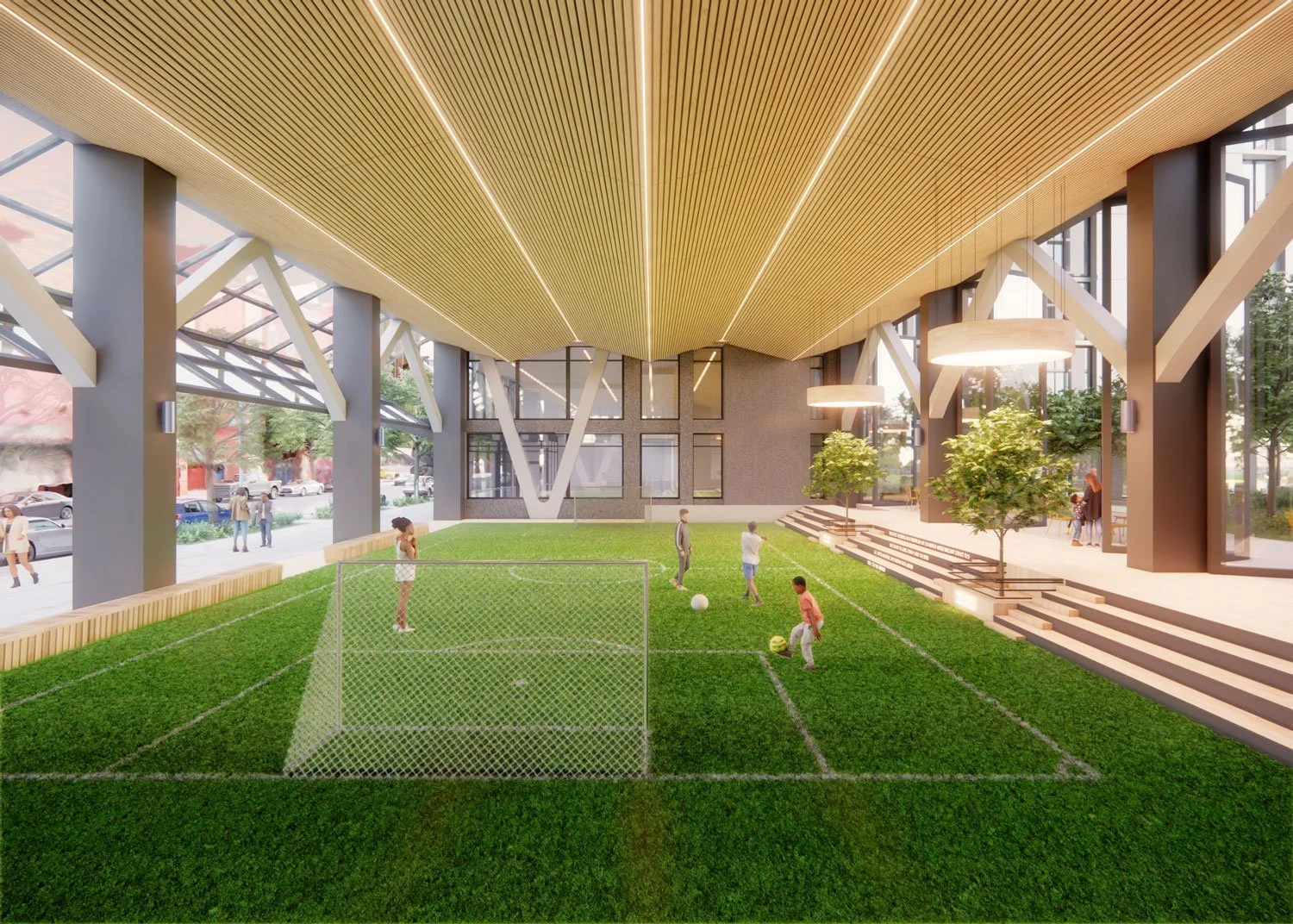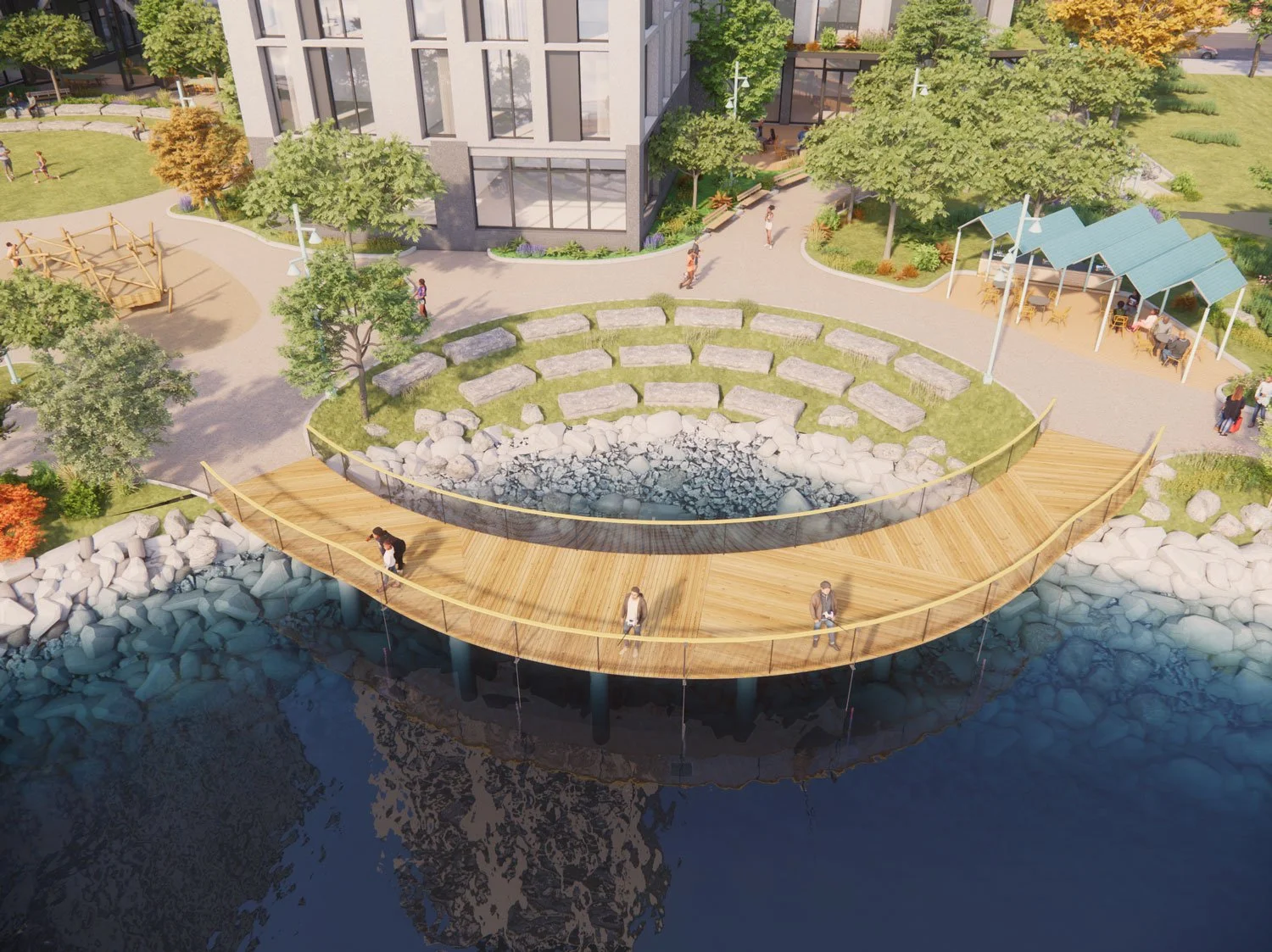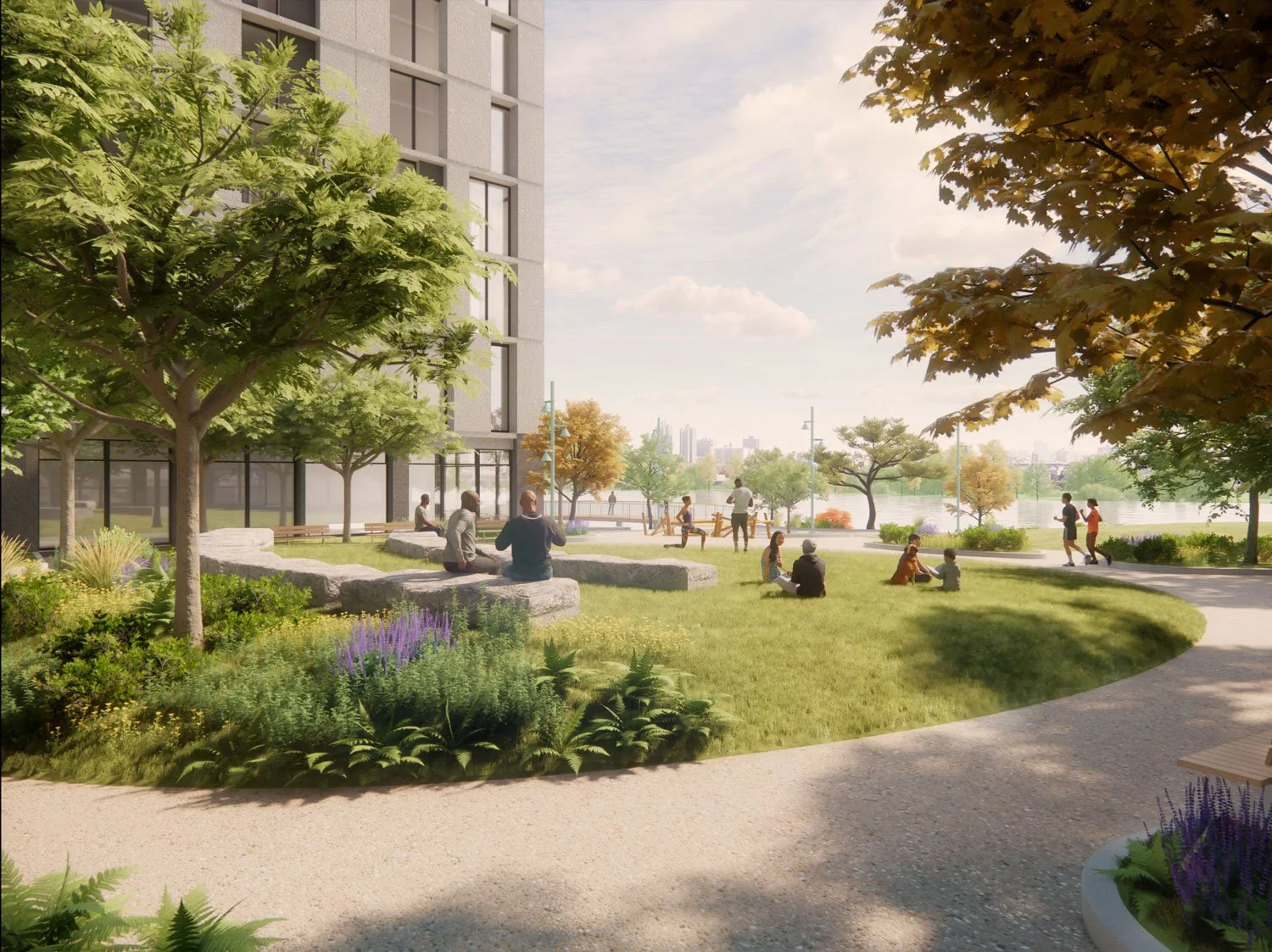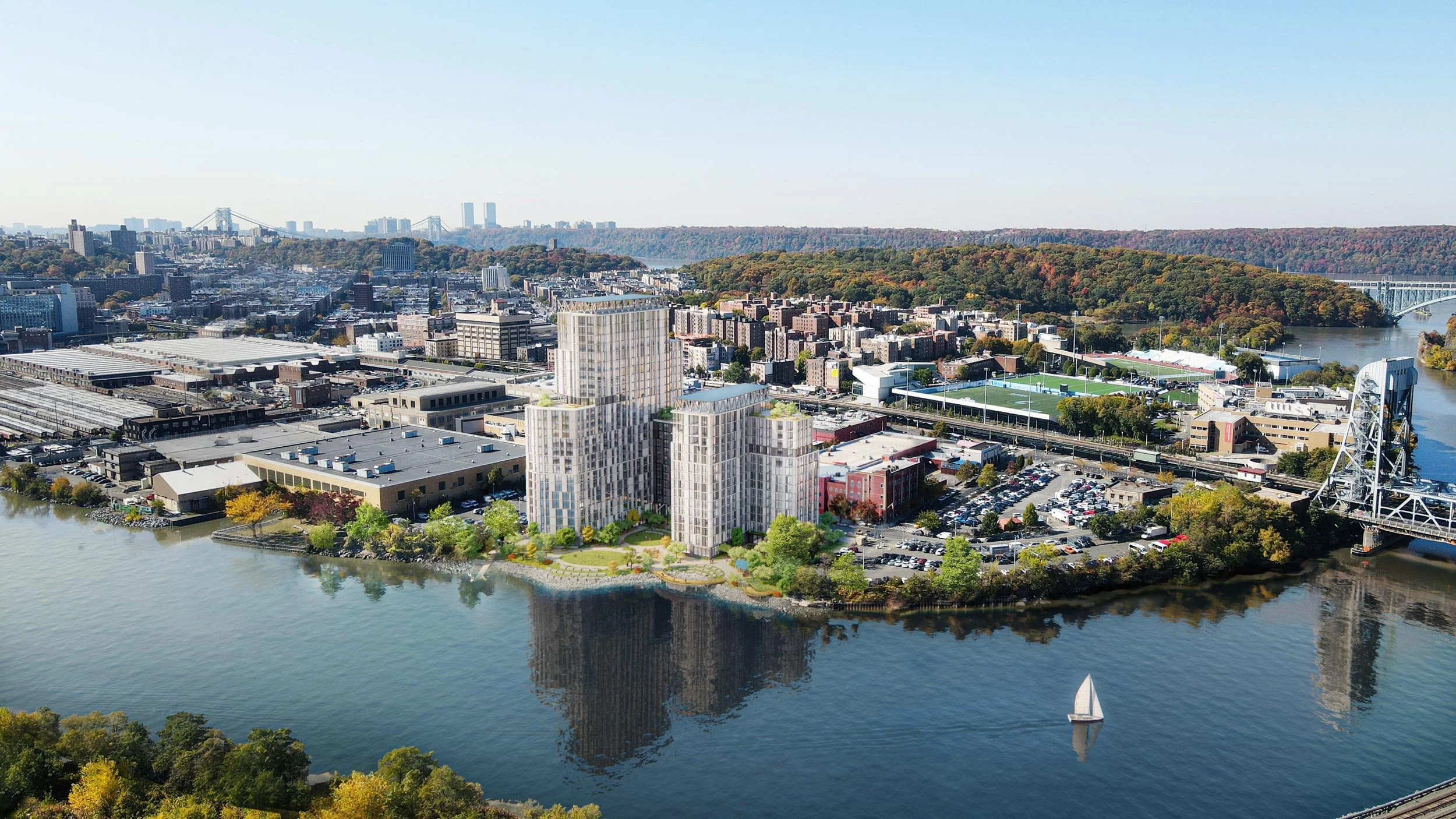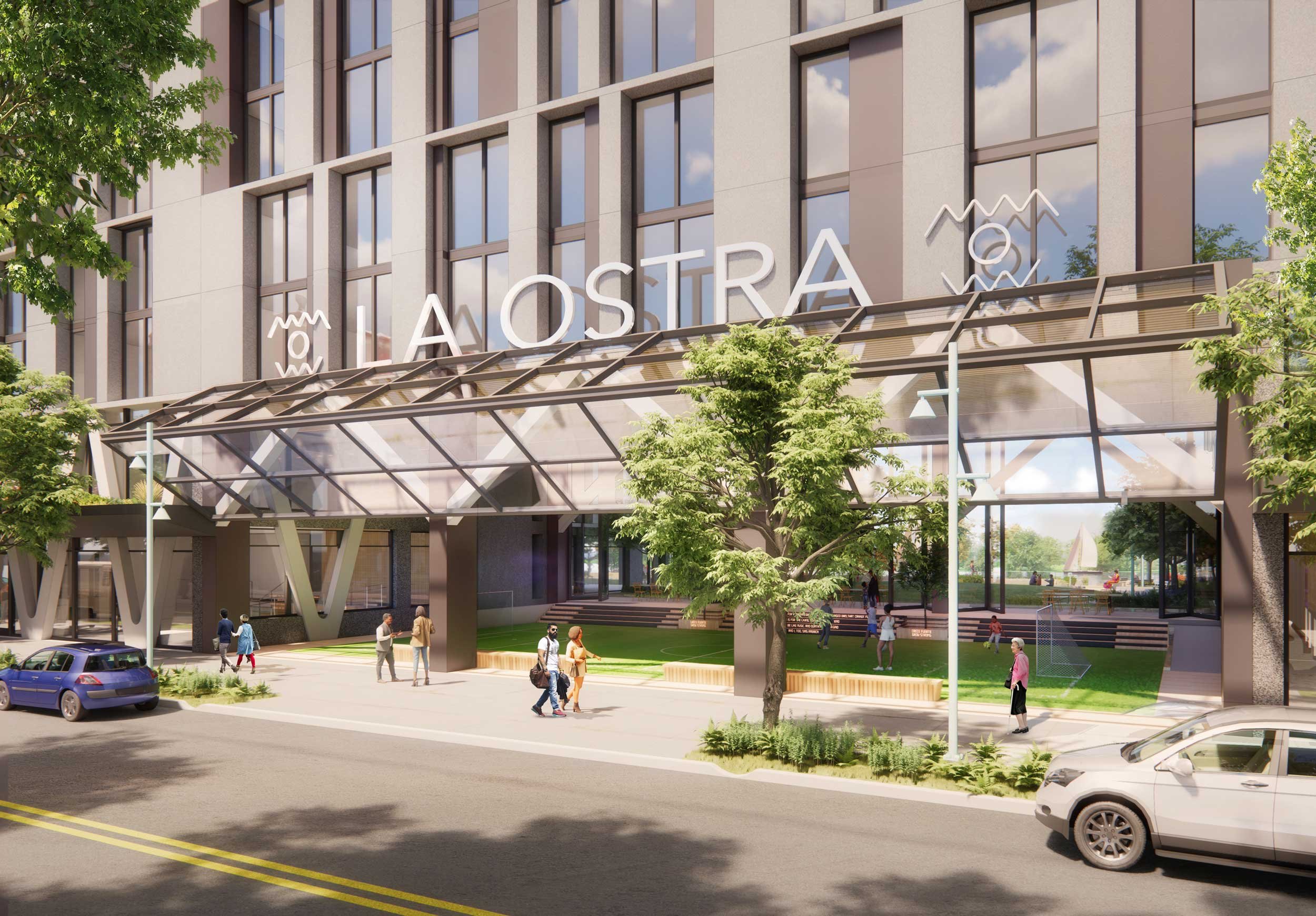 The winning submission for NYC HPD’s Inwood RFP, La Ostra will provide 625 affordable apartments (224 for seniors and 401 for families and individuals) as well as a publicly accessible waterfront park along the Harlem River. With strong partner organizations like Billion Oyster Project, BioBus, Life is Precious and NPower the development will offer other community amenities, programs and services including a marine science and STEM education center, a new indoor-outdoor field house, and suicide prevention and mental health services.